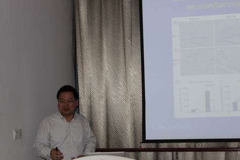 柳扬博士主要研究方向是神经炎症在AD发病中的分子作用机制。曾在Brain、Journal of Immunology等著名期刊发表多篇论文。此次报告主要阐述了小胶质细胞在AD发病中的重要作用,尤其是小胶质细胞中IKKβ在Aβ形成和降解中的分子作用机理。与会的老师和同学就报告中感兴趣的问题,积极提问,柳扬博士均详细解答。