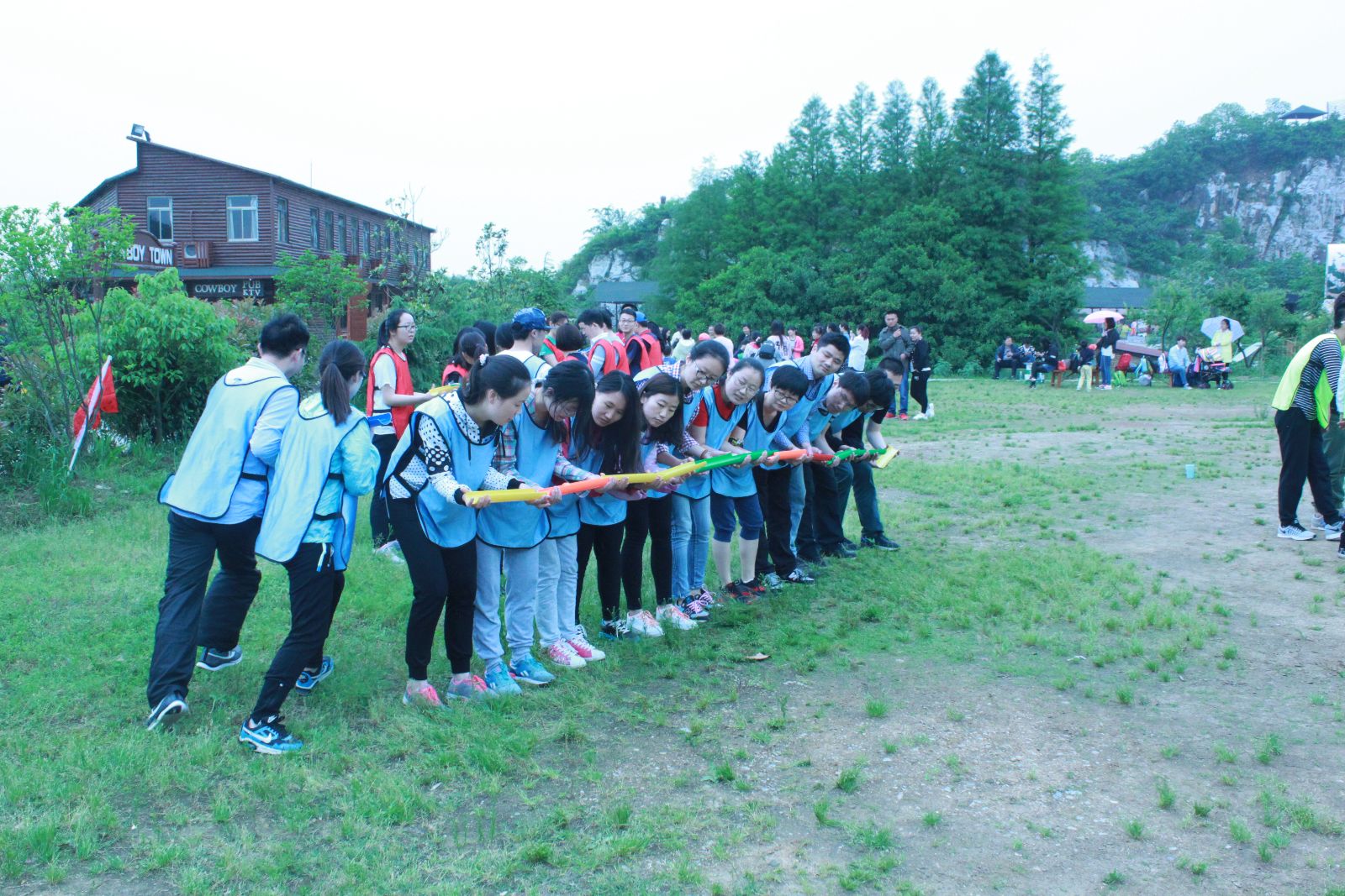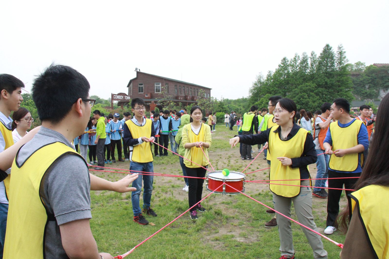 早晨7点20分,全体人员整装待发,前往苏州太湖牛仔乡村俱乐部拓展训练基地。到达拓展地后,教练将所有组员随机成五组并要求各队在15分钟内设计各组的队名,口号,队歌,队徽,队员们积极参与,相互启发,整个现场沉浸在一片商讨声中,氛围高涨。随后开始了第一个拓展项目:“挑战150”:每队队员在150s内完成大鼓击球、u管接力求等四项体育活动。乍看起来几乎不能完成的任务却在各队队员的相互配合与默契下都圆满完成,这给每位队员上了深刻的一课,全队同心,其利断金!简单的午餐之后,我们在教练的带领之下挑战了“指压板大战”,各队队员都表现出色,期间欢声笑语不断。之后进行的“撕名牌大战”更是将活动的氛围推向高潮。最后,黄队比分力压其他四队,斩获第一名。这个活动项目让我们深刻体会到了沟通交流与团队合作的重要性。