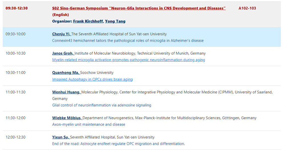 Scientific Program of Sino-German Symposium “Neuron-Glia Interactions in CNS Development and Diseases”