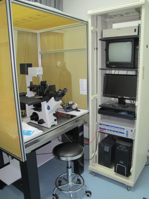 Function: 1.Channel number: single channel. 2.DAC. 3.Whole cell patch clamp and Perforated cell recording. 4.Amplifier background noise: < 90 fA. 5.Current measuring resistor: 50GΩ, 500MΩ, 5MΩ. 6.Maximum current: 200pA (50GΩ) 20nA (500MΩ) 20uA (5MΩ). 7.Full computer control.
