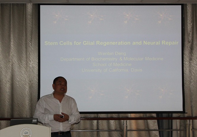 Invited by Professor Chun-Feng Liu, Professor Wenbin Deng (University of California, Davis) gave a brilliant talk entitiled “Stem Cells for Glial Regeneration and Neural Repair” in Institute of Neuroscience at 2:30pm, March 27th, 2014. The faculties and students from Institute of Neuroscience and School of Medicine attended and gave Prof. Deng a warm welcome.